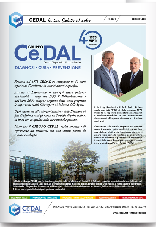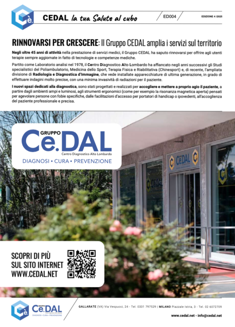 In tutti i punti operativi del GRUPPO CEDAL troverai una copia a tua disposizione del nostro Giornale che periodicamente ti informerà sulle novità in fatto di cure, nuove tecniche e tecnologie per la diagnostica e la prevenzione.