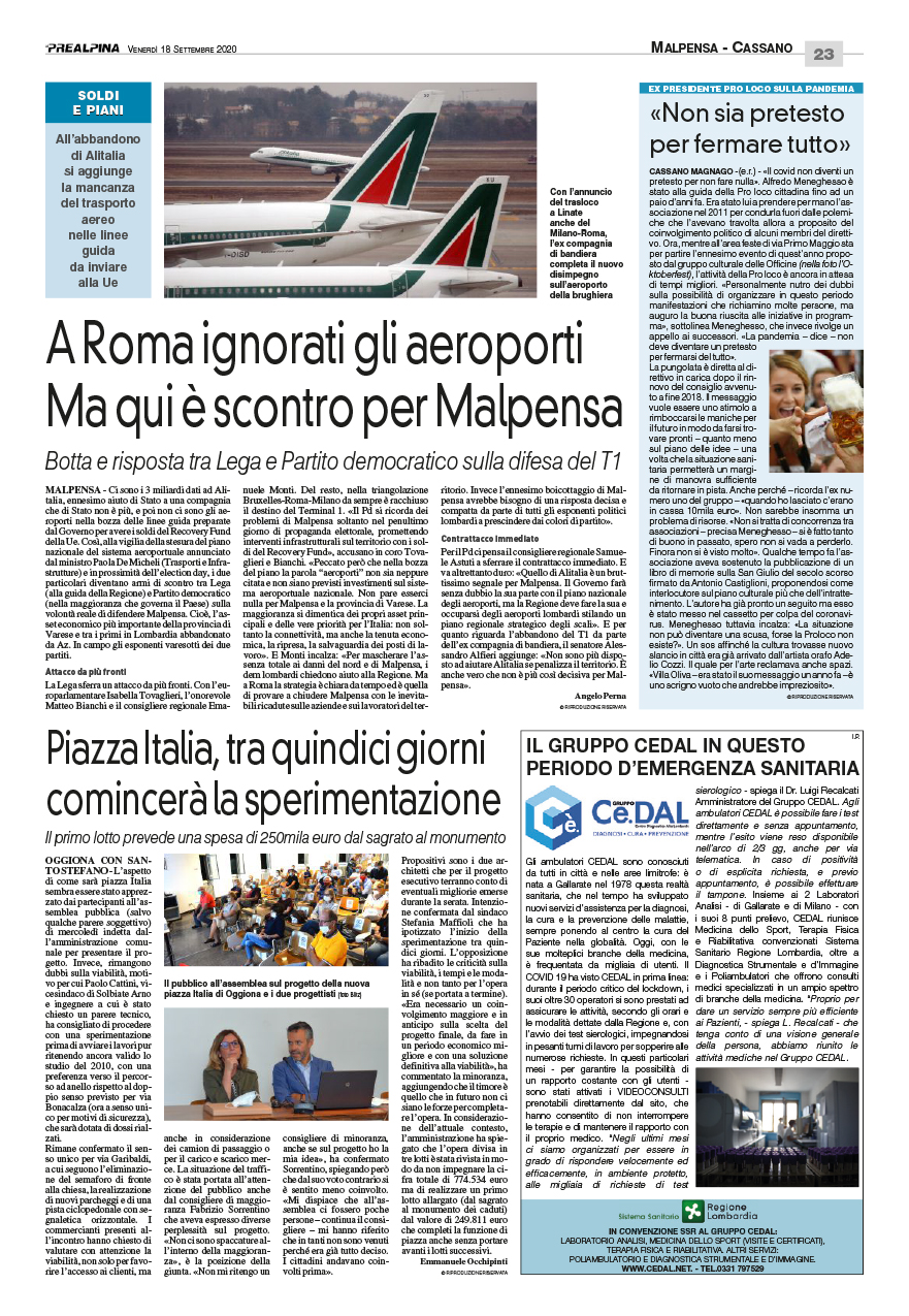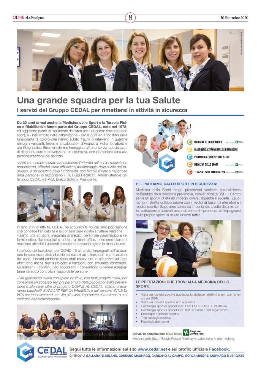 <<<<< Leggi il redazionale su PREALPINA del 18 settembre 2020.Una grande squadra per la tua salute